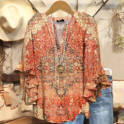 Women's Retro Ethnic Totem Art Pattern Print Casual Cotton Shirt