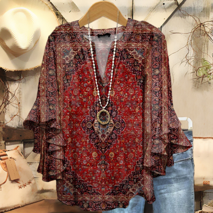 Women's Vintage Retro Ethic Art Print Casual Cotton And Linen Shirt